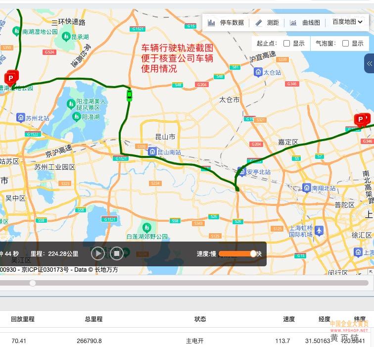 ●行车记录,车辆行驶信息均可查询,历史轨迹均可会放。